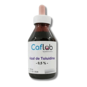 Solución colorante de amplio uso en laboratorios de análisis clínico, histología y citología. El Azul de Toluidina es un colorante básico que permite visualizar estructuras celulares con gran definición y metacromasia.