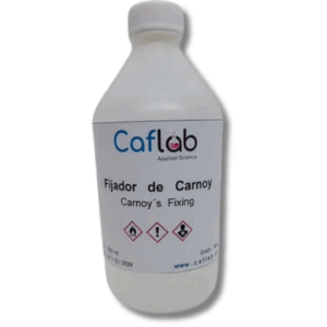 La Solución de Carnoy es un fijador ácido de uso extendido en laboratorios de histología, utilizado tanto en muestras de origen animal como vegetal. Su fórmula especializada lo hace ideal para conservar estructuras celulares delicadas y componentes bioquímicos que requieren una fijación rápida y efectiva.
