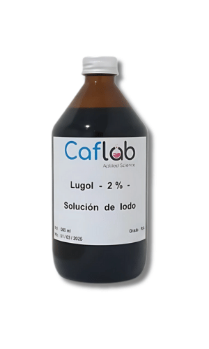 Lugol – Solución Iodada – Caflab Solución de Lugol en presentación de 500 ml, elaborada en frasco de vidrio ámbar