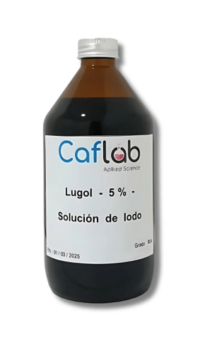 Lugol – Solución Iodada – Caflab Solución de Lugol en presentación de 500 ml, elaborada en frasco de vidrio ámbar