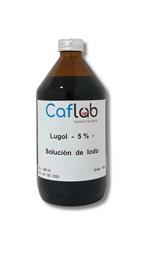 Lugol – Solución Iodada – Caflab Solución de Lugol en presentación de 500 ml, elaborada en frasco de vidrio ámbar